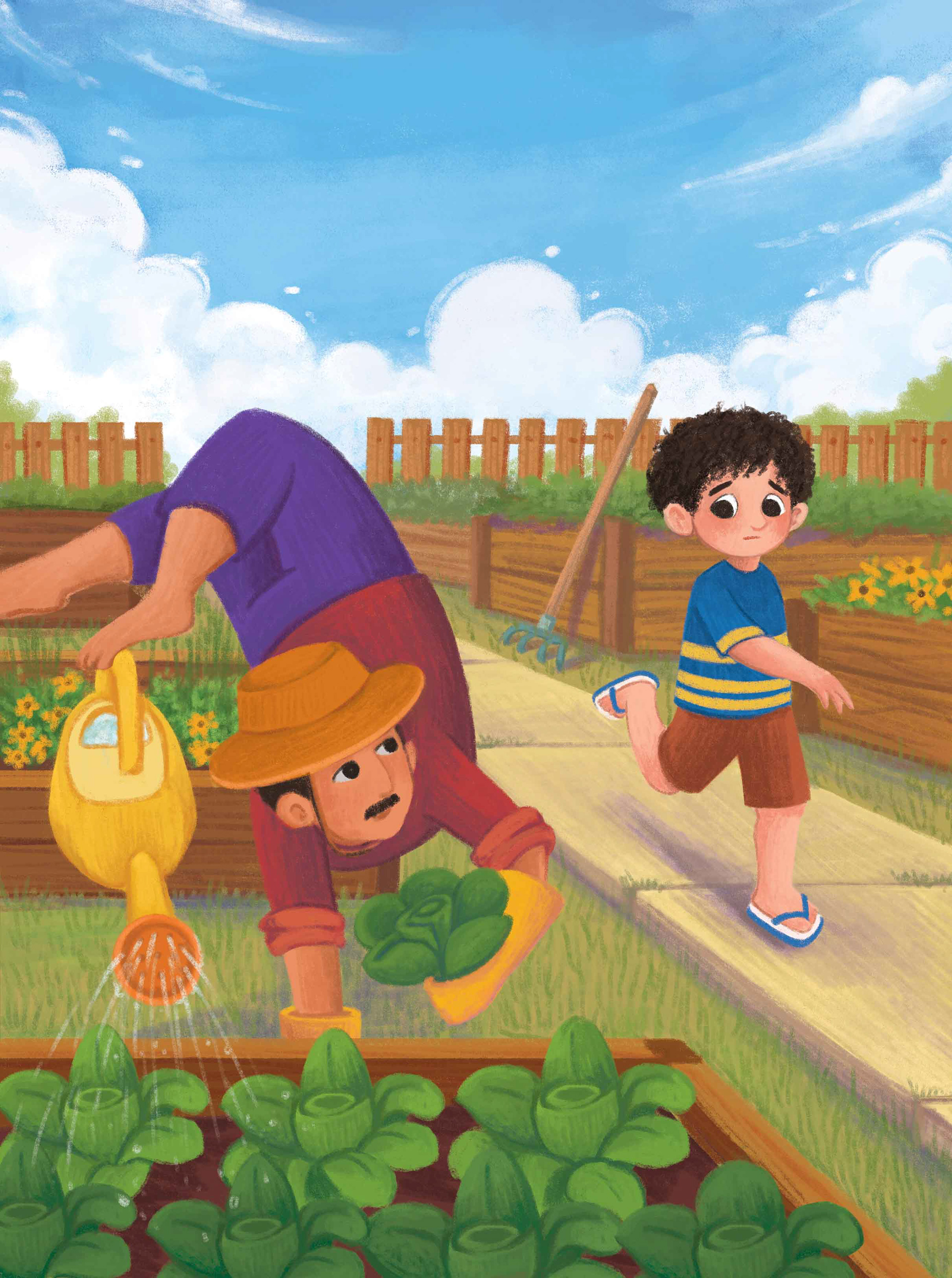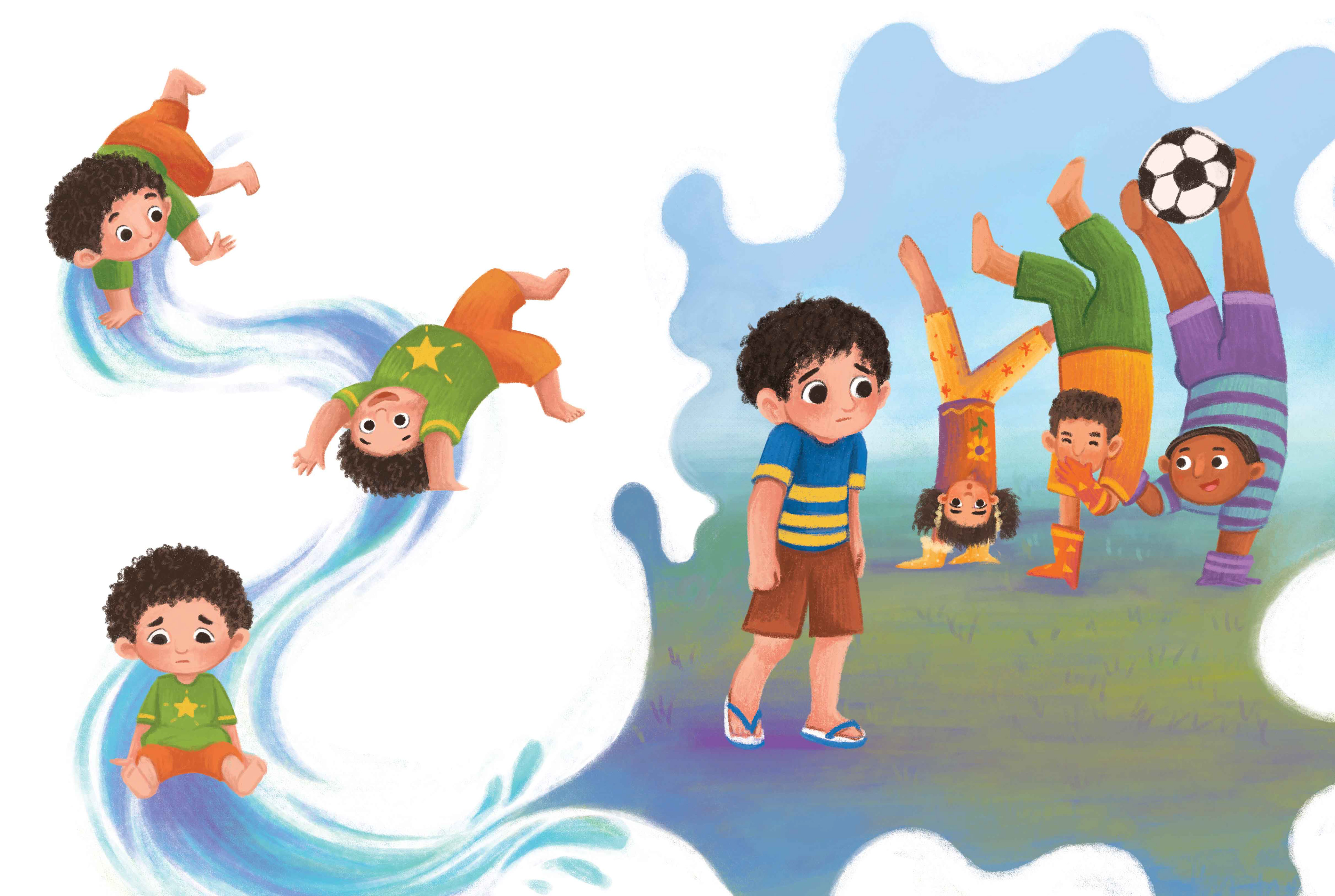 In Beda Village, everyone walks using both hands. However, Layin does not. Everyone thinks Layin is strange. Layin wants to have friends to go walking together. What will Layin do?